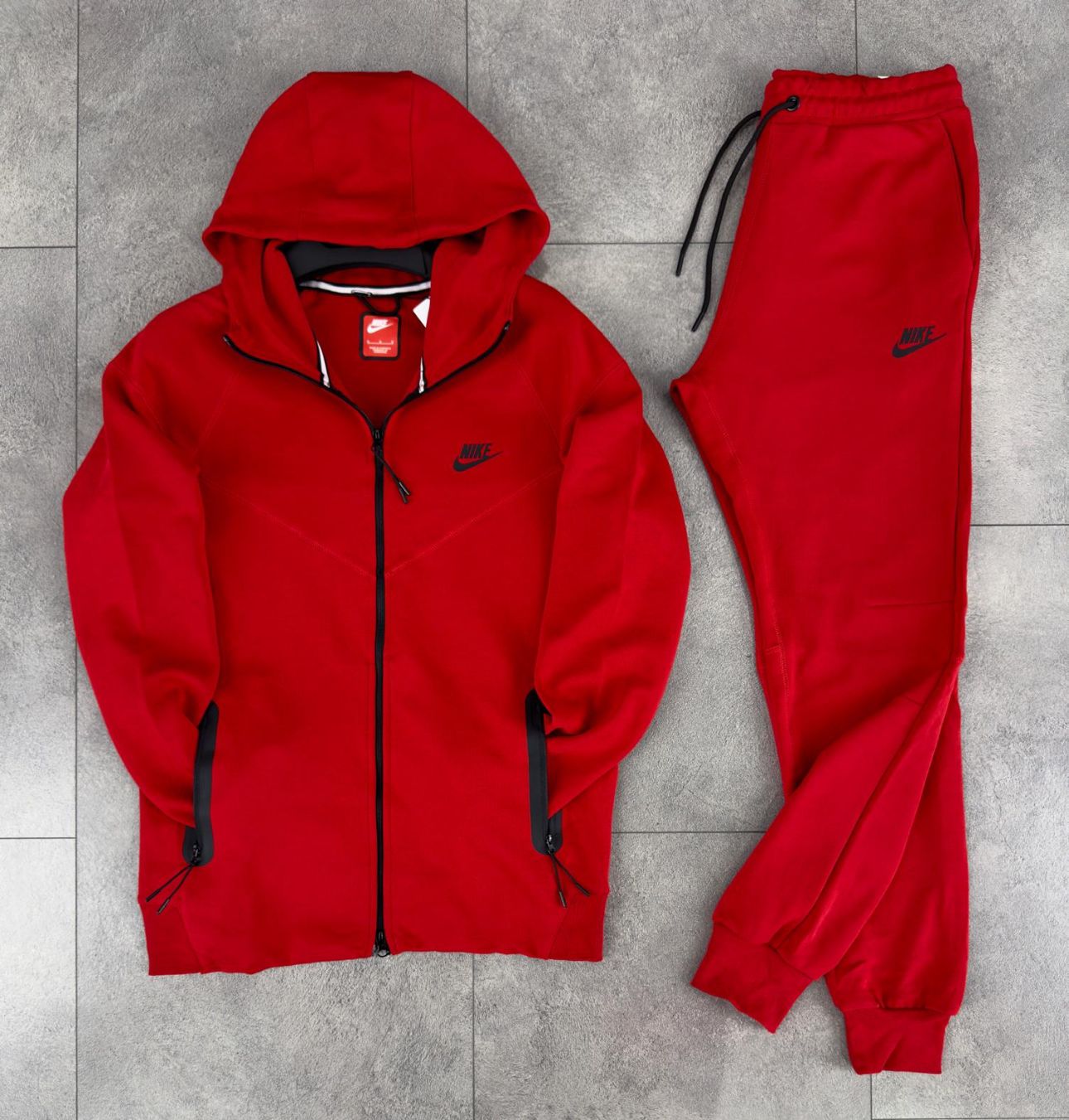 Мъжки спортен комплект Nike Tech Fleece в червен цвят, качество и комфорт за активния мъж