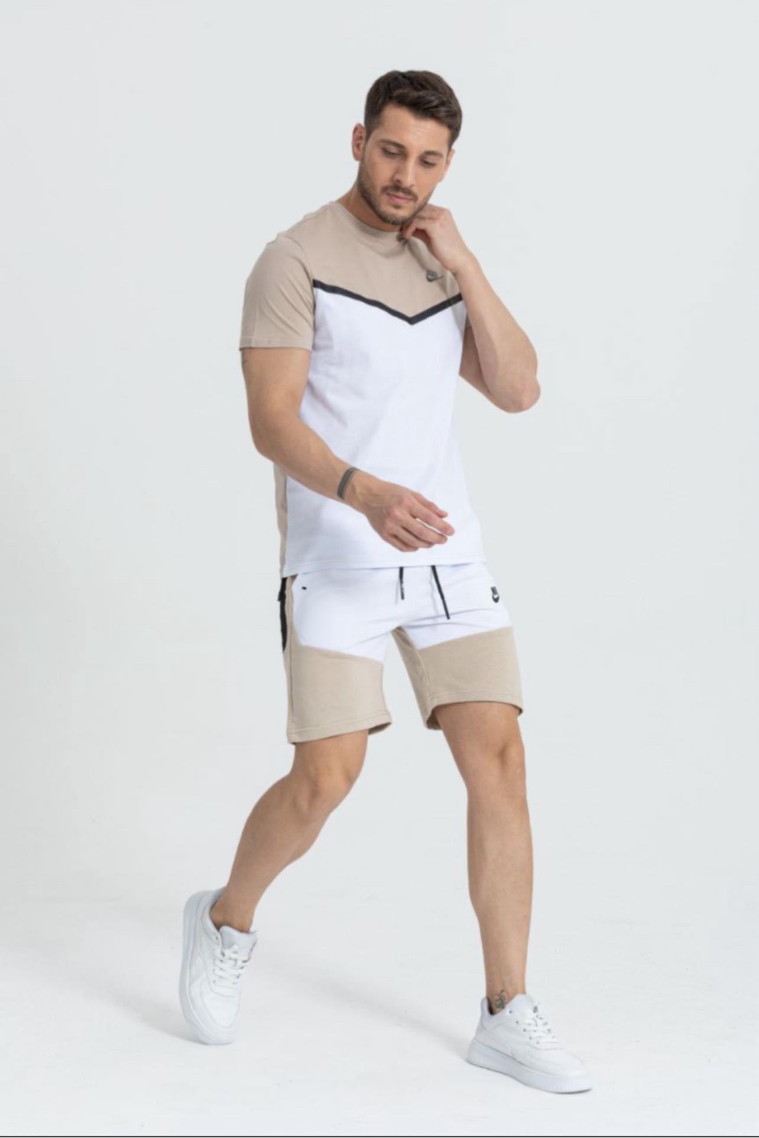 Nike къс екип мъжки бяло и бежово – доставка